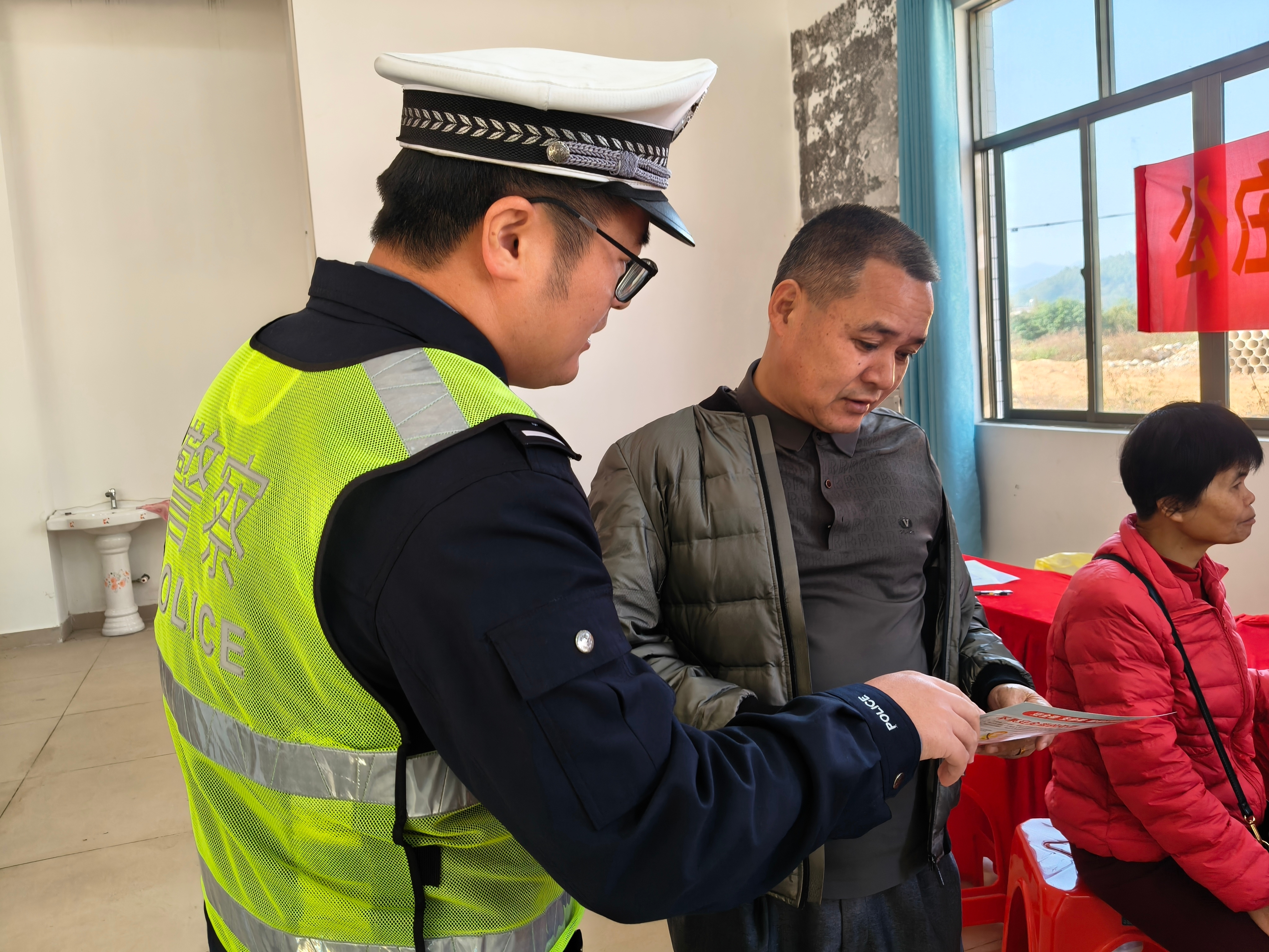 12月9日,惠州市博罗县公安局交管大队走进公庄镇白沙岗村,面向老年人群体开展“文明交通 礼行天下”交通安全宣传活动。